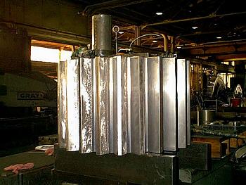 Inclined Housings can be converted to a 4-roll configuration by replacing the existing 3-roll housings with a new Fulton 4-roll housing. Savings can be achieved by using some of the existing equipment in the 4-roll conversion. Fulton can provide complete engineering and parts for mill housing replacement including; new fourth roll, side boxes, bronzes, side caps, chain or crown wheel drive components, and fourth roll turnplate assembly.
