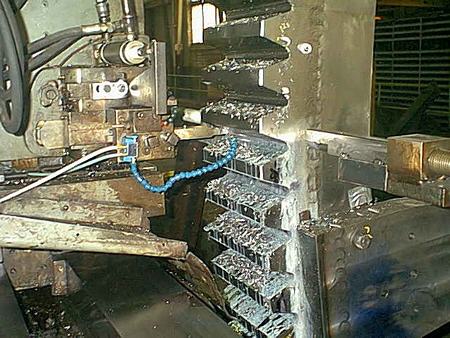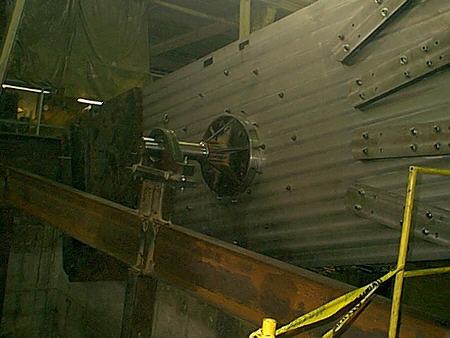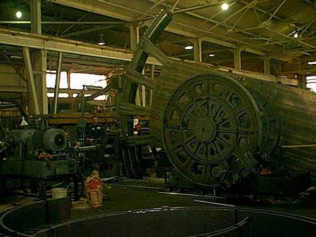 The gear shaper utilized in the fabrication of the gears for a drawbridge, was completely laid out, assembled, and made operational by Fulton Iron employees. The shapers capacity was made larger by separating the gear index unit, the power unit, and the mill head and re-anchoring them next to a pit, to handle the larger diameter.